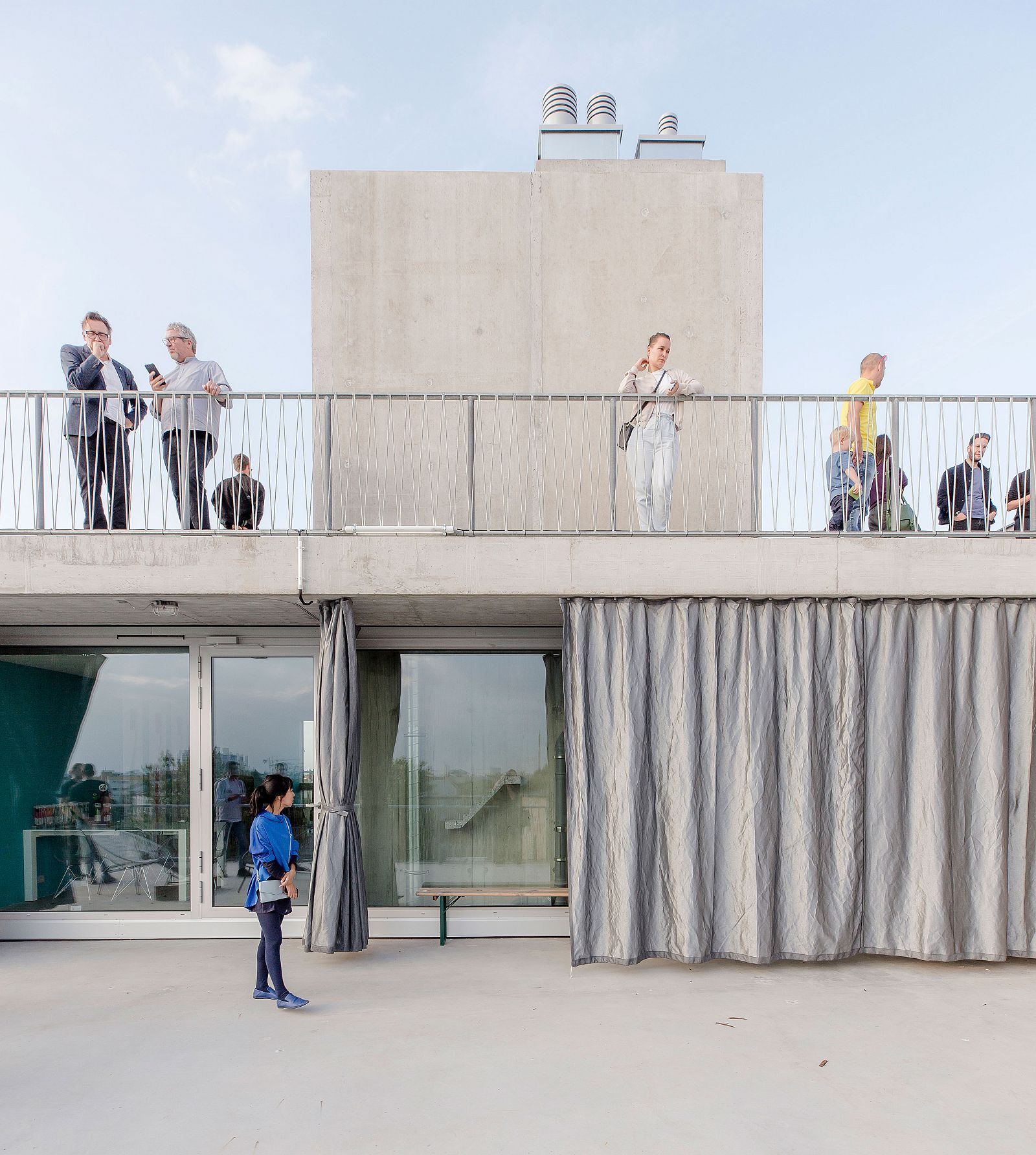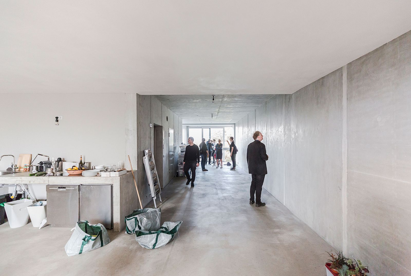 Open House on the occasion of the completion of 0162 Terrassenhaus Berlin by Brandlhuber+ Emde, Burlon / Muck Petzet Architekten. Additionally, the visitors could listen to a discussion with the architects Arno Brandlhuber and Muck Petzet, the client Olivia Reynolds, and managing director of the studio and gallery building Elke Falat, moderated by Antje Stahl and Robert Slinger.