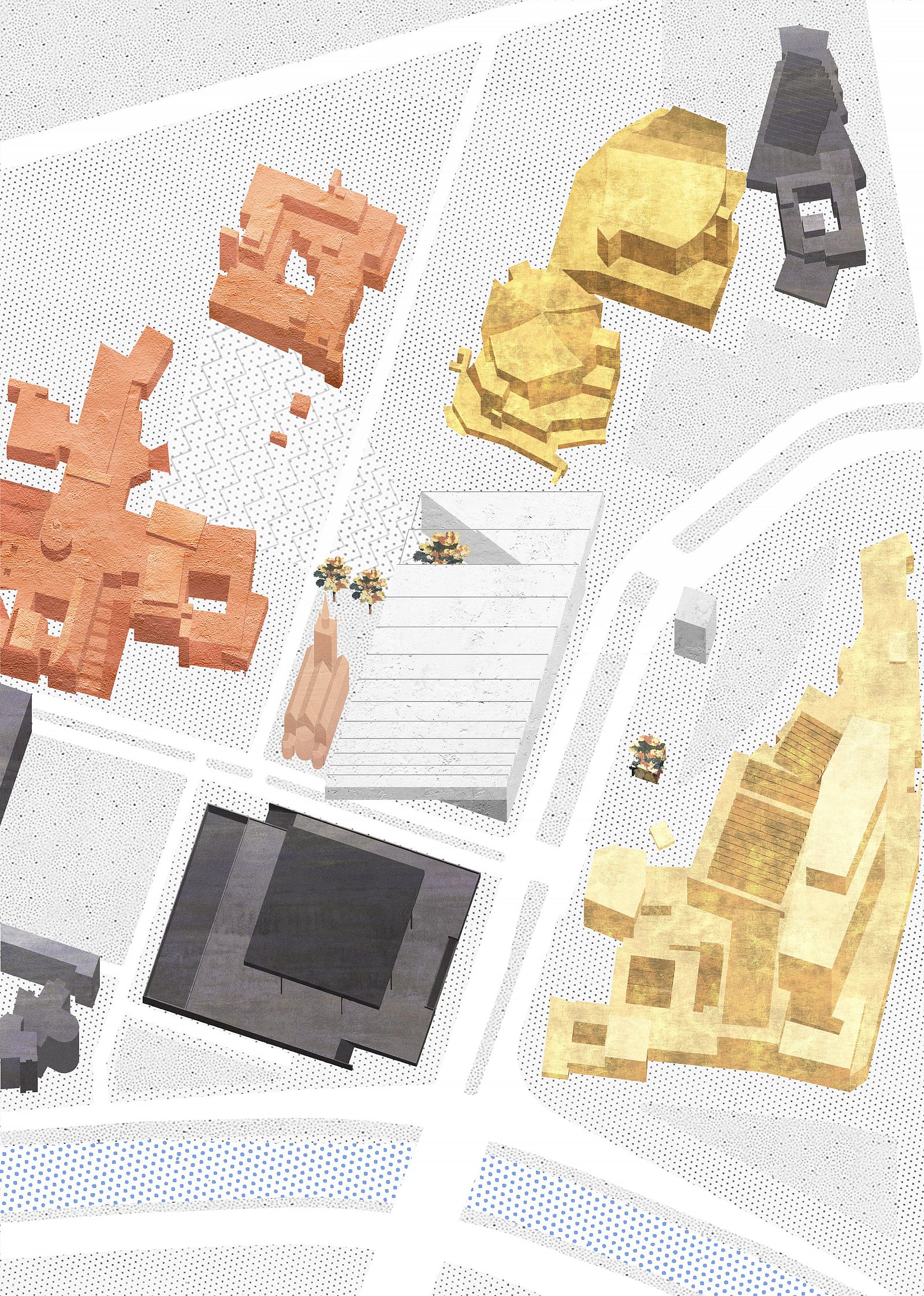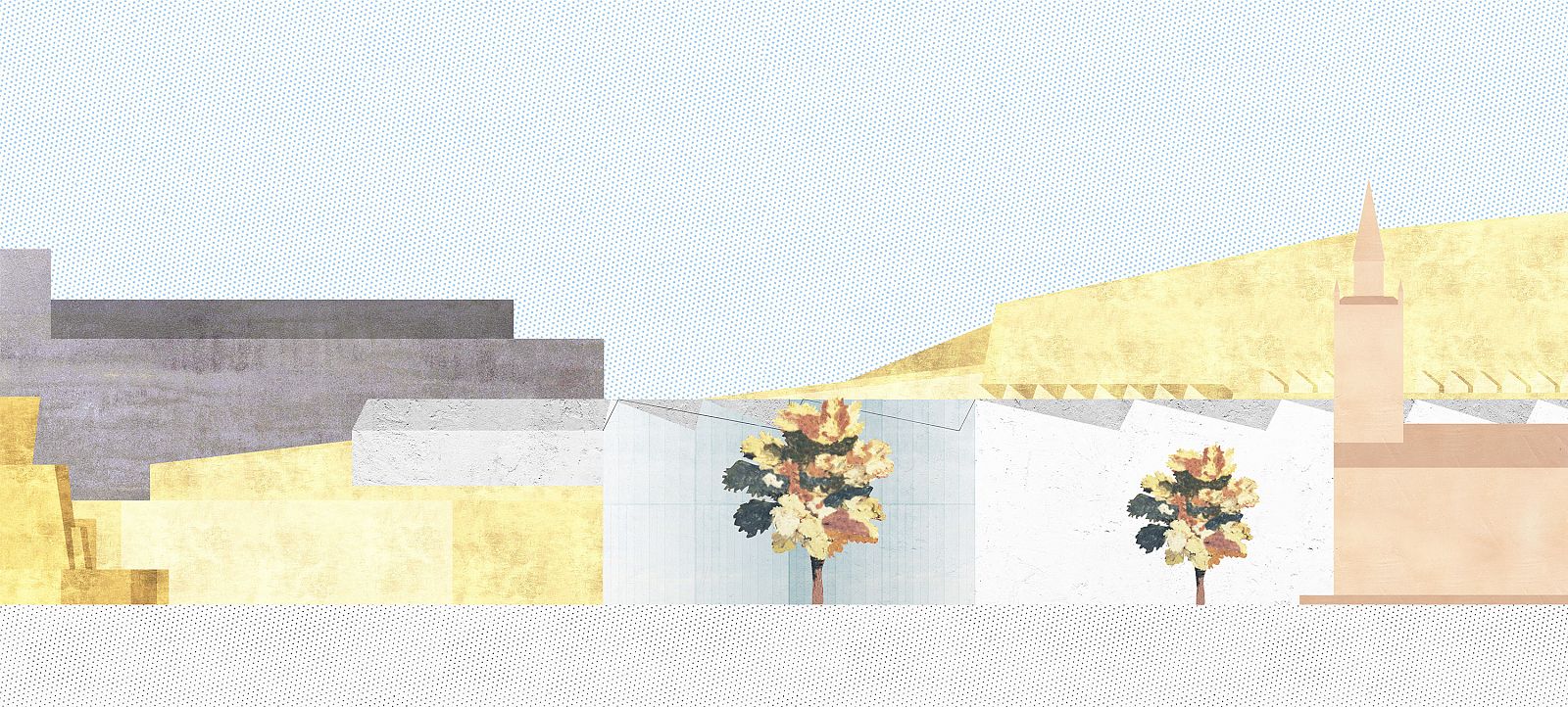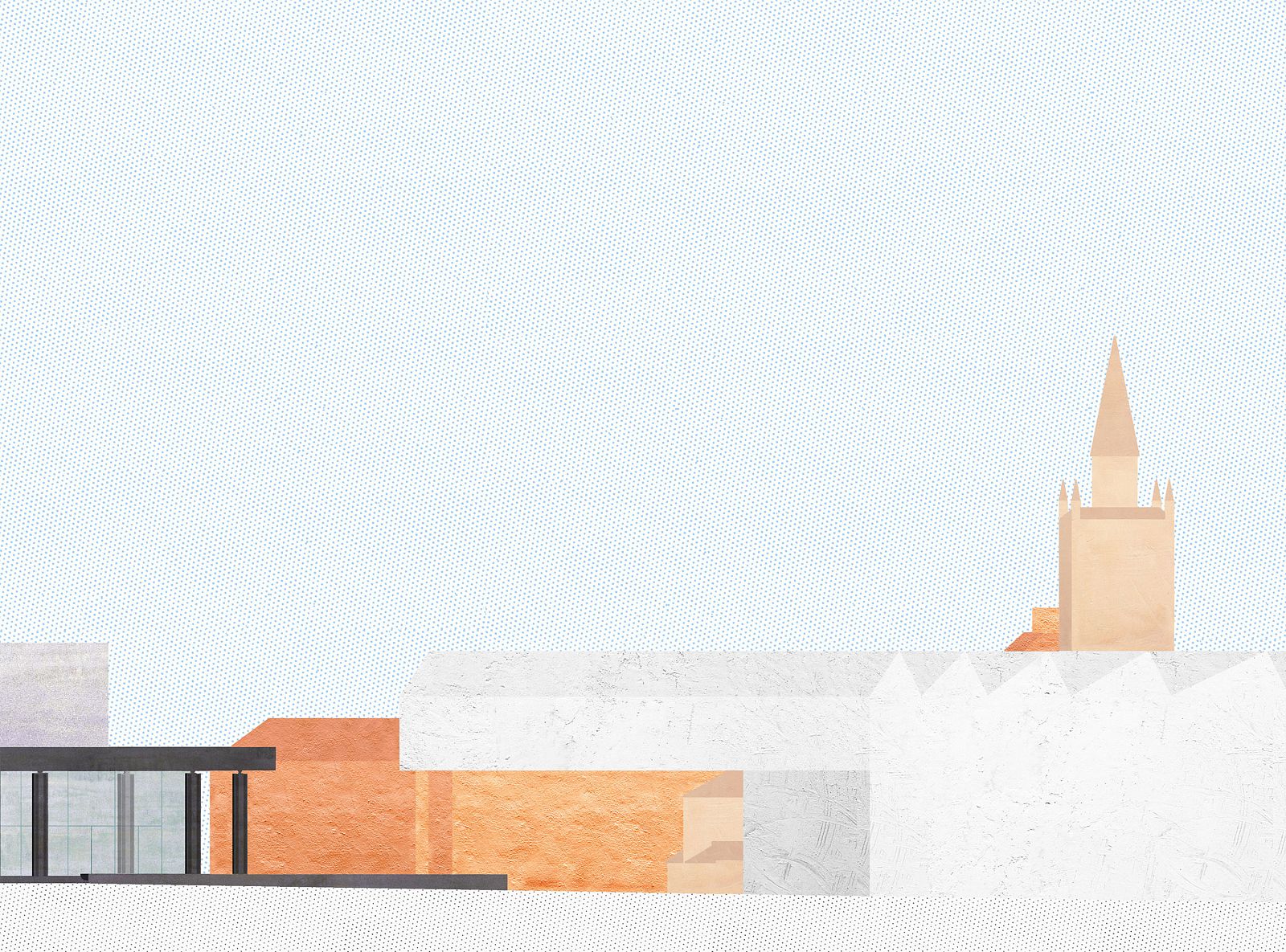 In 2015, the Stiftung Preußischer Kulturbesitz announced a competition for a new museum at the Kulturforum to make the collection of 20th century art accessible to the public. The site of the competition is adjacent to the Berlin Philarmonic on one side, for which Scharoun drew on his thoughts on the “urban landscape,” and Neue Nationalgalerie on the other, which was initially designed by Mies van der Rohe for the Bacardi headquarters. The project responds to the two icons with pragmatism: the maximum permissible dimensions define the volume, the wedge-shaped incision for an existing tree allows the sloping piazzetta of the Gemäldegalerie to reach the building and creates an entrance for the new museum, and the requirement for northern illumination of the interior is met by a shed roof, which is slightly twisted to align with the north-south axis. On the inside, the grid-based floor plan follows the orientation of the plot and ensures diversity: rooms in any size are provided—they differ in length, width, and height—to which the widths of the overhead lights adapt. Any materialistic articulation is avoided on the outside and the concept of the white cube is applied to the facades: the surfaces are constantly being painted throughout the year. This performative act is also an allusion to the saying of the German artist Karl Valentin “Kunst ist schön, macht aber viel Arbeit” (“Art is beautiful, but requires a lot of work”).