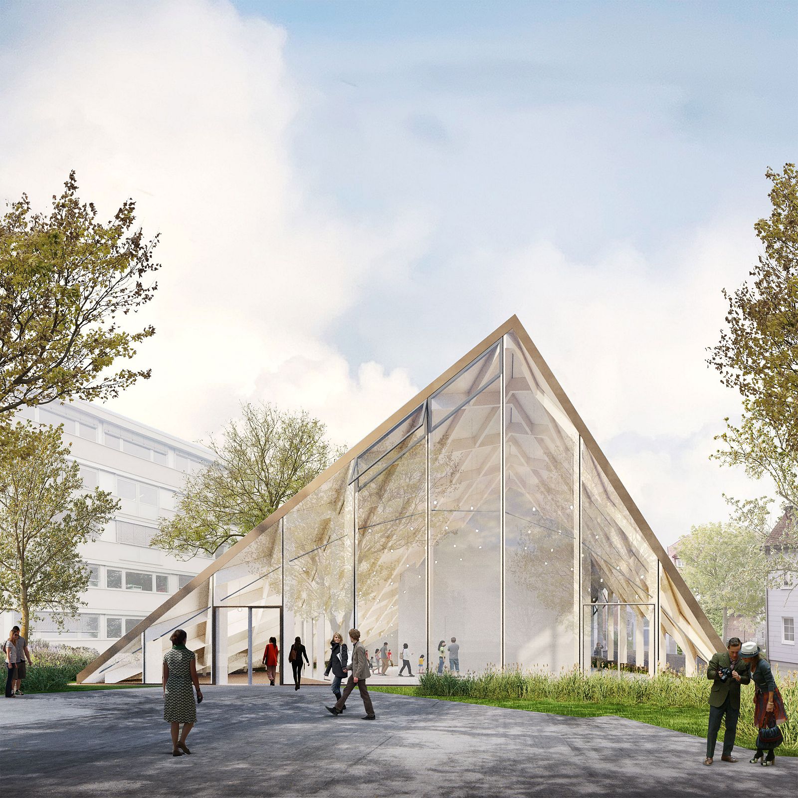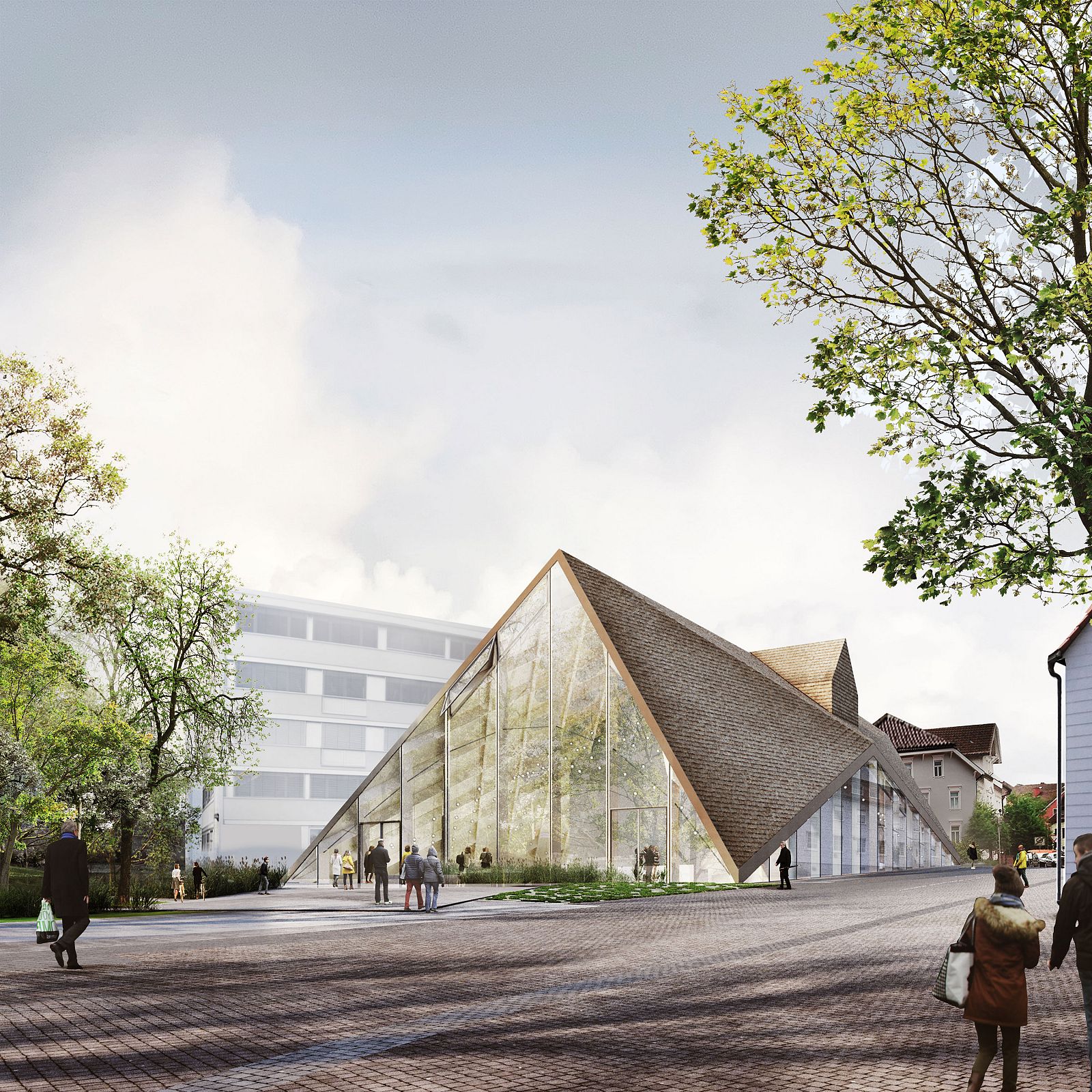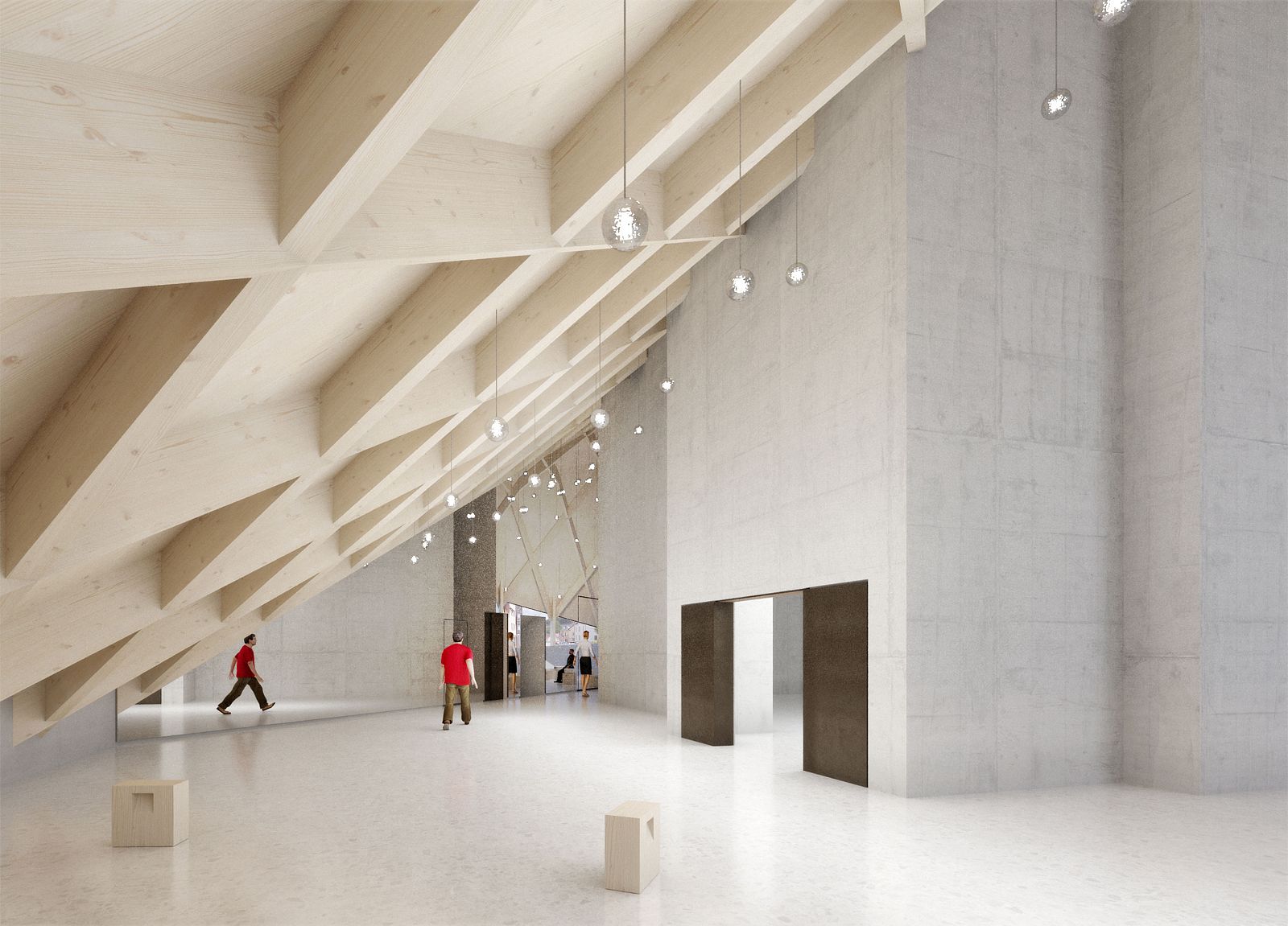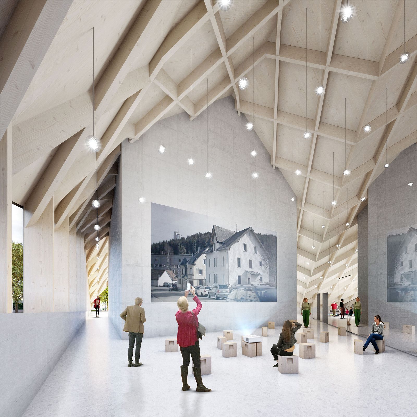 The “new positive” is going to be the main exhibition room of the building. The roof construction, reminiscent of typical local typologies, extends the space beyond the volume of the cast building to create an enclosing, multifunctional forum. The roof geometry is derived from the cubature of the existing building; the length of the roof surfaces is determined by the property boundaries and the terrain. Following the same logic, the permeability of the facade as well as the surface of the roof react according to the solar radiation—another external factor that influenced the design of the building. The existing building is not only preserved through the casting process, it also informs and contextualizes all elements of the design. The integration of internal and external contexts—the casting of the existing building and the typology of the Black Forest—creates a design dynamic that finds its physical expression in the fusion of all the components.